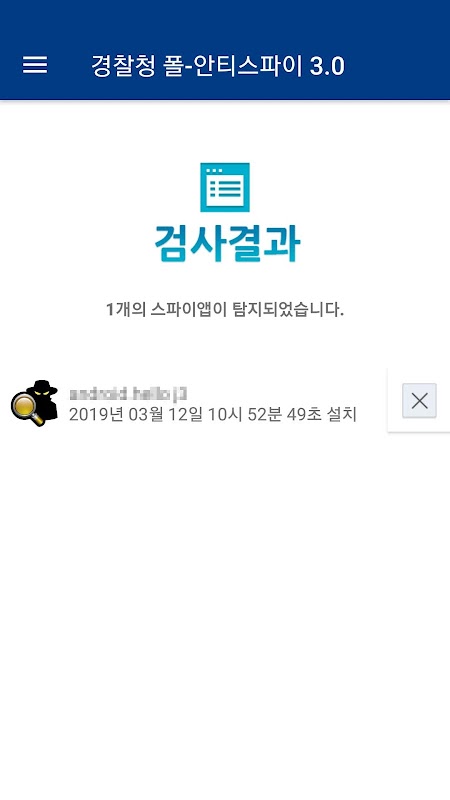 ※ 모든 종류의 스파이앱 혹은 악성코드를 탐지하지 않습니다. 지속적으로 탐지 가능한 스파이앱 대상을 추가해 나가고 있습니다. 스마트폰의 이상 상태나 악성코드 치료를 위해서는 전문 안티바이러스 제품을 함께 사용하기를 권장합니다. 또한 안드로이드 스마트폰의 업데이트를 늘 최신 상태로 유지하시길 권장합니다.