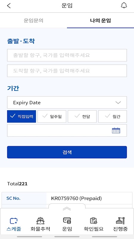 - 구간, 선박, 나의 스케쥴에 대한 선박 스케쥴
