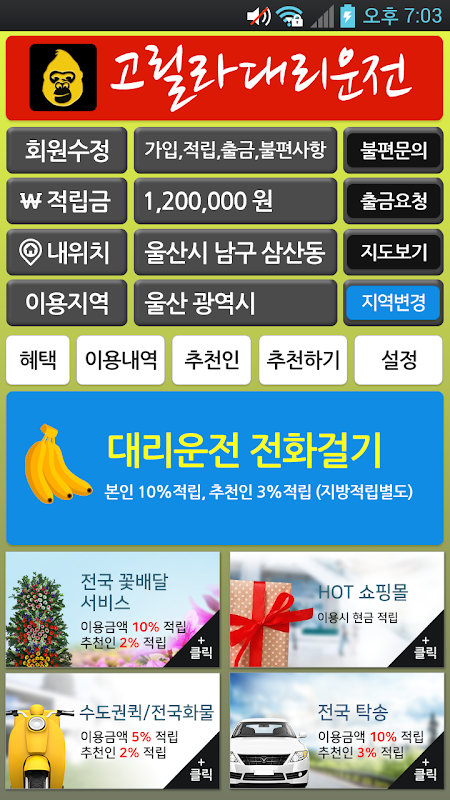 *터치한번으로 대리운전,꽃배달,퀵등의 서비스를 이용하실수 있는 어플입니다. 어플제작문의는 1877-1113으로 문의주세요!!