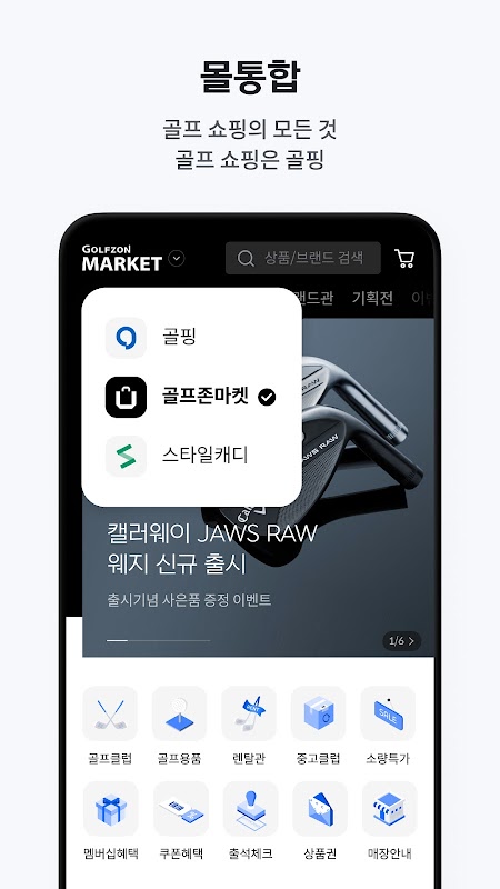 La tienda de equipos de golf número uno de Corea, Golf Zone Market, lo recibe con una aplicación móvil.
