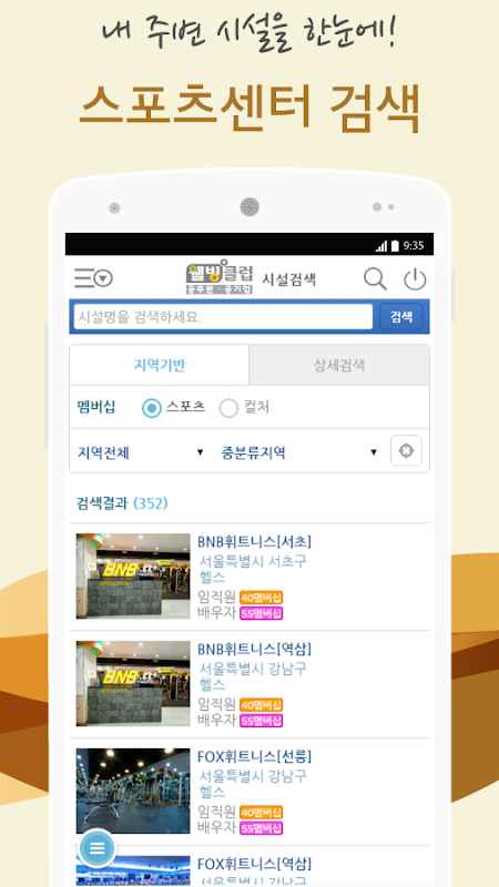 - 주요서비스 : 헬스, 골프, 수영, GX, 사우나 등