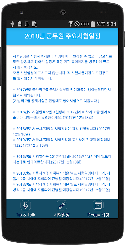※ 추가공무원일정 , 수정 일정 등은 개발자 메일로 연락을 주십시오. 최대한 빠른 시일내에 업데이트 하도록 하겠습니다.