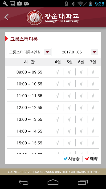 Kwangwoon Biblioteca Central de gestión de plazas