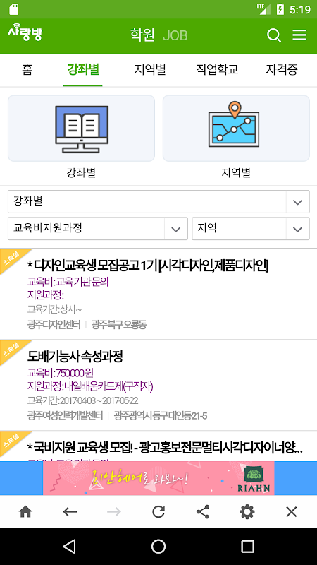 광주 사랑방 학원 - 다양한 강좌, 자격증, 직업학원 1.0.3