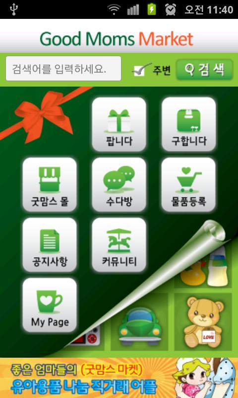 굿맘스마켓은 유아용품(아동 어린이) 및 생활잡화 중고직거래 장터 안드로이드 전용 앱입니다.