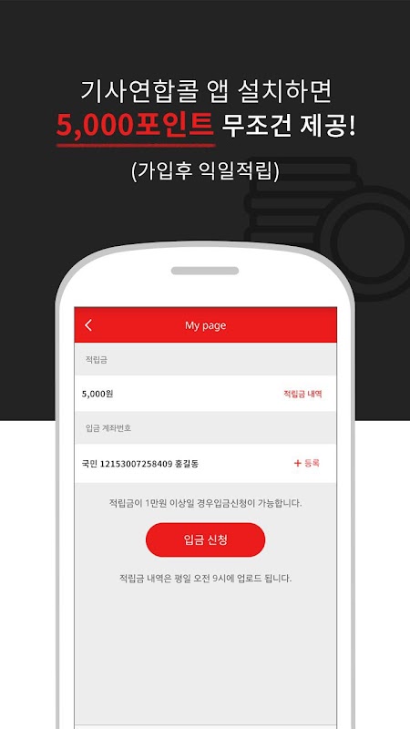 "기사콜" 의 앱 다운고객에게는 5,000포인트가 선-적립되고