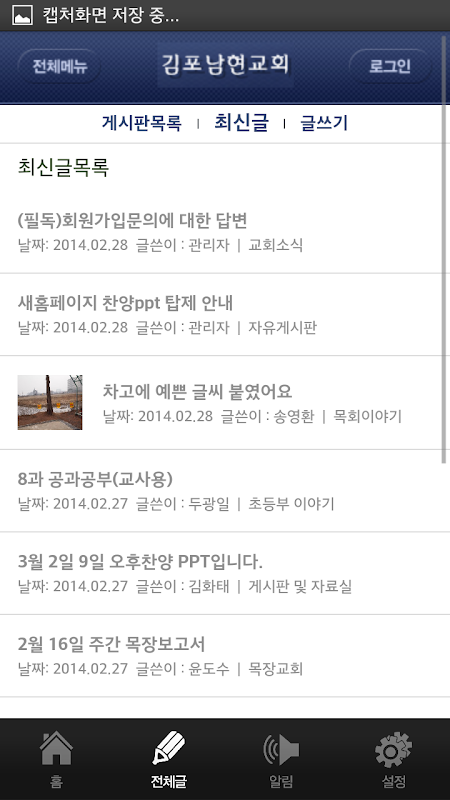 * 게시물, 사진 등록 : 글쓰기가 가능한 게시판과 앨범에서는 앱에서 직접 글등록 및 사진을 찍어서 바로 등록이 가능합니다.