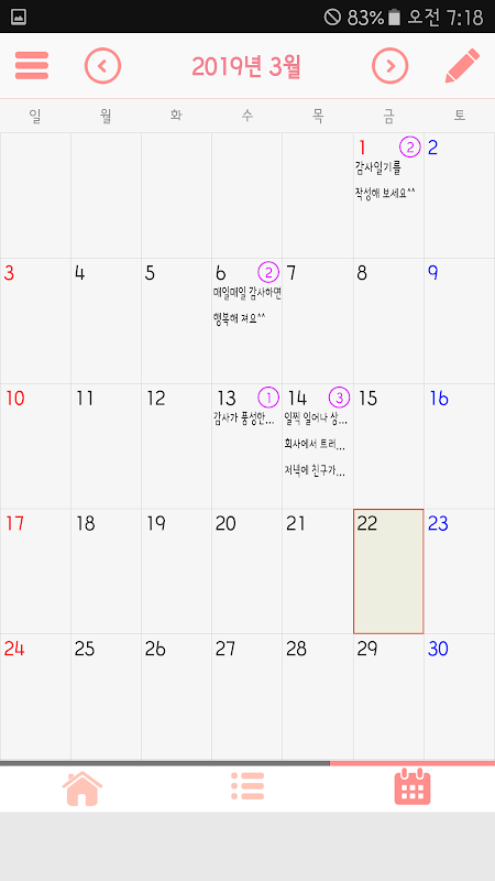 - Puedo ver la lista de agradecimientos en forma de calendario.