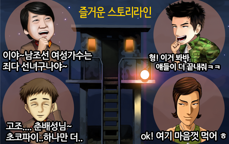 남한북한 병사들이 맞고대결을 펼치는 유쾌코믹한 온라인 맞고게임 입니다.