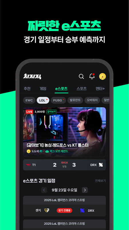 - e스포츠/스포츠/엔터 주요 방송 일정을 모아볼 수 있는 편성표 기능이 추가됐어요.