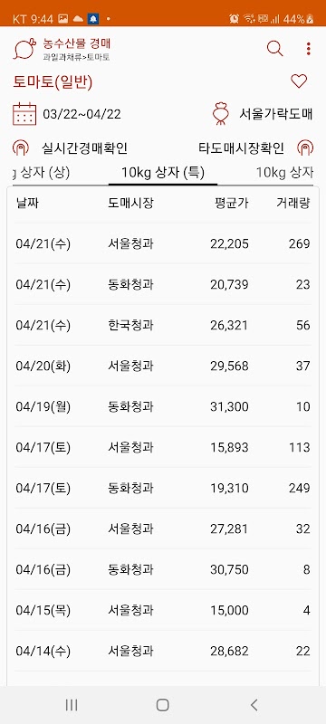 농산물, 수산물 도매시장 경매 결과를 한번에 편하게 보여드립니다.