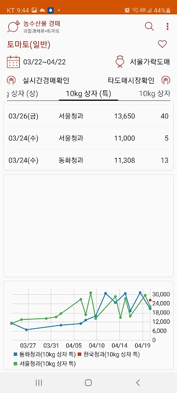 실시간 경매정보, 도매시장별 가격 정보, 산지별 가격정보