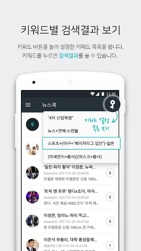 Hola, soy Dahami. Newscock es un servicio que busca e informa en tiempo real de artículos en línea generados constantemente. Si configura palabras clave y ciclos de notificación en el menú de configuración, los mensajes push se enviarán en consecuencia. Puede registrar hasta cinco expresiones de búsqueda de palabras clave y, al tocar el título del resultado de la búsqueda, puede ver el texto en la página original del artículo multimedia correspondiente. Si nos informas de alguna mejora, la tendremos en cuenta. Nos esforzaremos por recompensarle con un servicio más confiable. gracias
