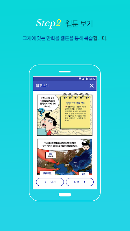 교재에 있는 만화를 웹툰을 통해 복습합니다.