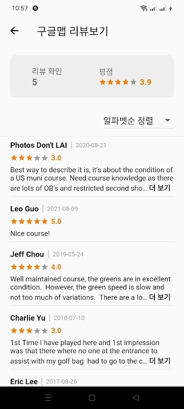- 골프장 별 구글 평점 을 확인 해서 투어 일정 을 직접 세울수 있습니다