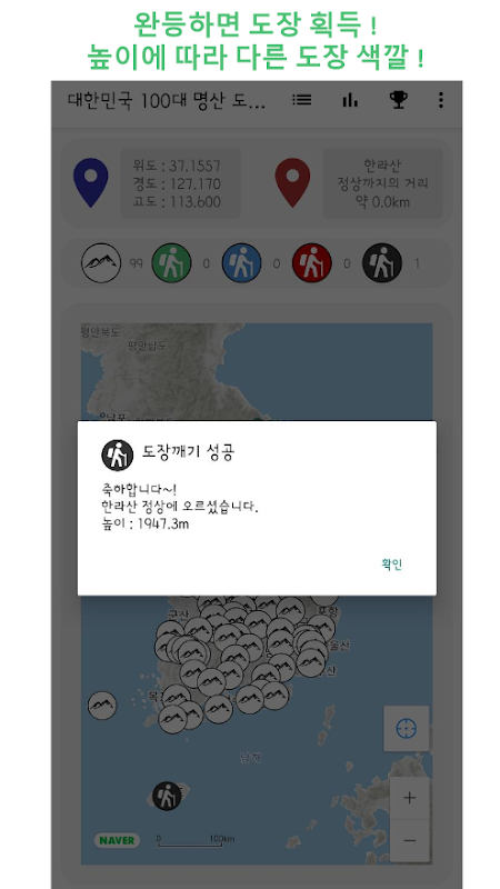 Es una aplicación que adquiere un sello al escalar las 100 montañas más famosas de Corea.