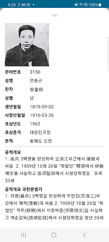 La aplicación Independence Activist presenta a los activistas por la independencia de Corea y proporciona contenido que contiene sus logros.