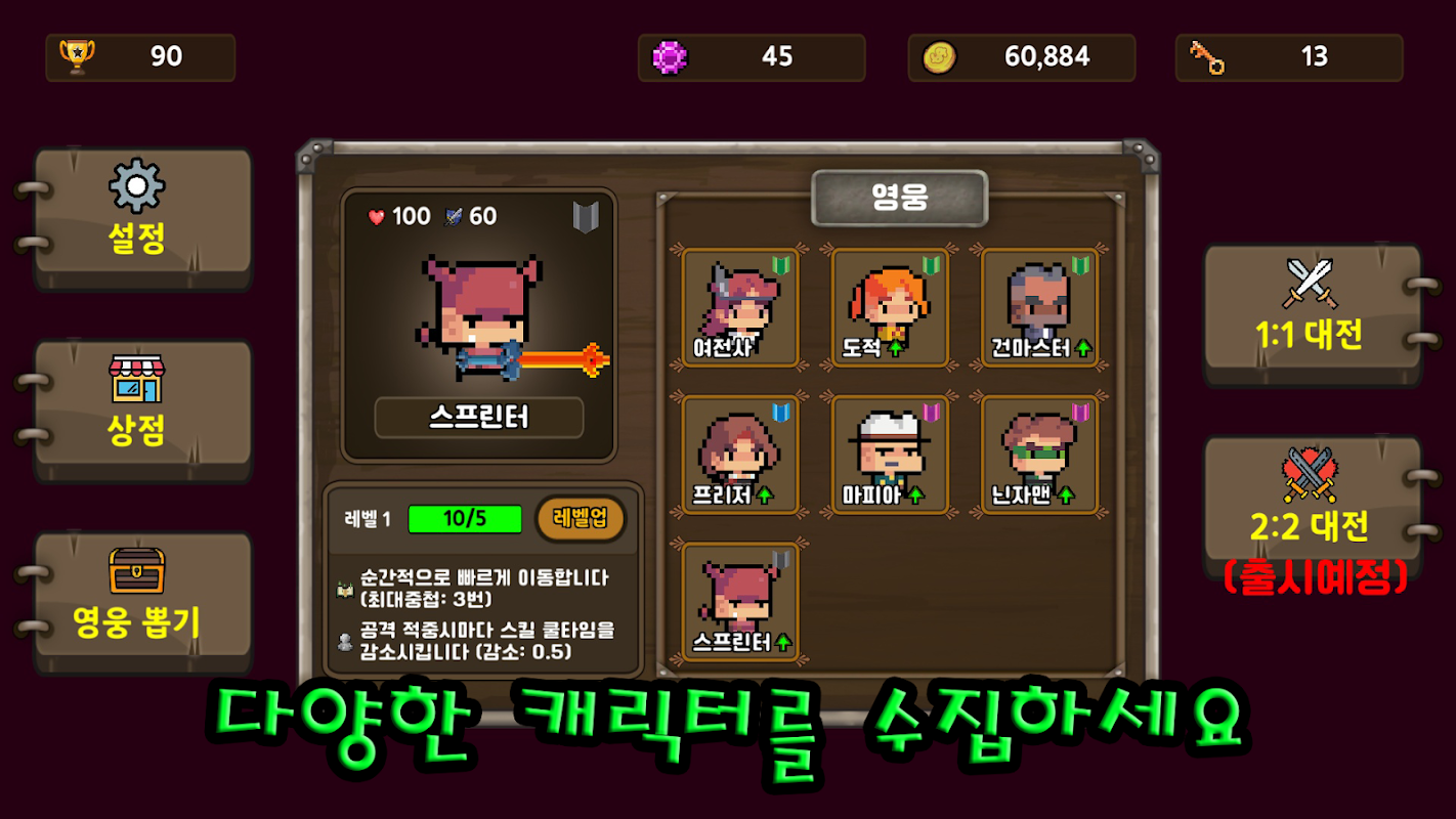 Haz un buen uso de los ataques básicos, habilidades y pasivos de cada héroe para derrotar a tus oponentes. ¡Colecciona y mejora a tus héroes para hacerte más fuerte! ¡Lucha con varias tácticas en varios mapas!