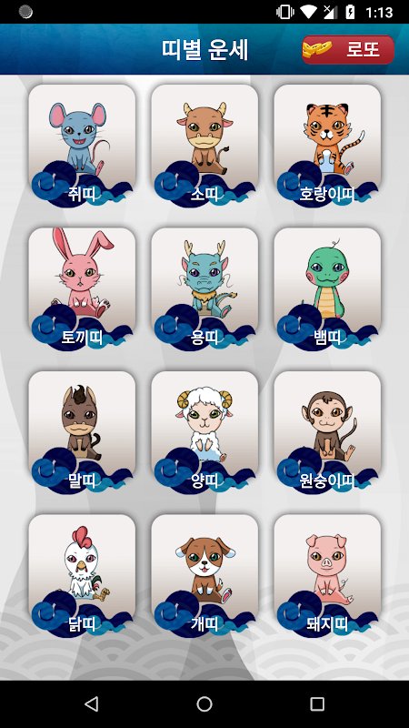 띠별운세-오늘의운세, 정통운세, 로또 1.13