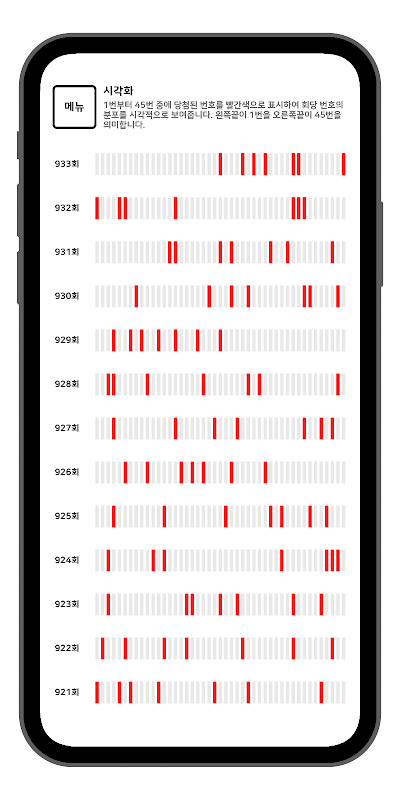 * 로또는 매회 독립확률이기 때문에 예측하는 것은 불가능합니다. 단지, 이 앱은 이미 정해진 데이터를 용도에 맞게 정리하여 살펴보는데에 도움을 줄 수 있습니다.
