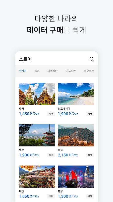 하루 테이크 아웃 커피 한잔 가격으로 로밍 데이터 해결.