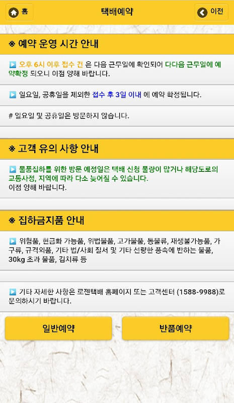 ♧ 택배 예약 : 택배 예약 및 반품 접수 기능