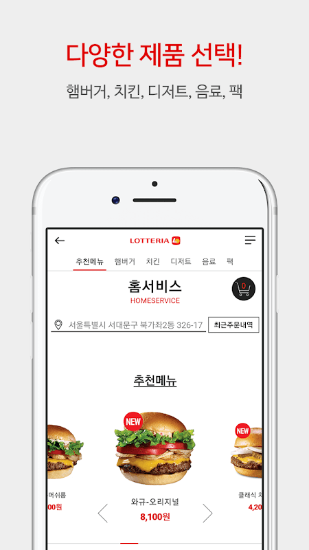 ※ 처음 어플로 주문하실 경우! 롯데 Family 통합 회원 가입에 동의하시지 않으셨다면 번거로우시겠지만 롯데리아 홈페이지에 접속하셔서 통합 회원 가입에 동의해주세요. 동의 후에 롯데리아의 맛있는 즐거움을 여러분의 집 앞까지 배달해 드리겠습니다~!