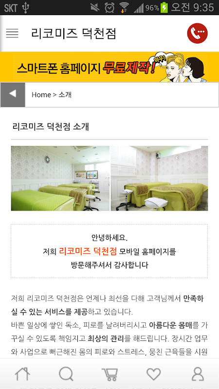 리코미즈 덕천점 모바일 앱에서는 각종 프로그램 안내와 오시는길, 블로그 후기 메뉴 등을 제공해 드리고 있으며