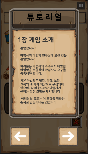 Debes preparar la poción mágica sugerida por el mago usando cuatro pociones mágicas básicas. ¡Cumple las expectativas del mago preparando pociones en el orden correcto y dentro del límite de tiempo!