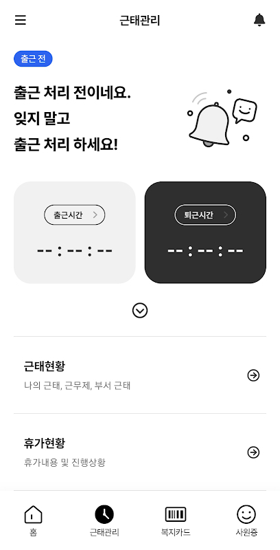 My Day es un servicio que gestiona los días laborables de los trabajadores de oficina. ¡Administre 52 horas a la semana con My Day, que le permite acceder a través del móvil sin una tarjeta de acceso y administrar el tiempo y la asistencia desde cualquier lugar!
