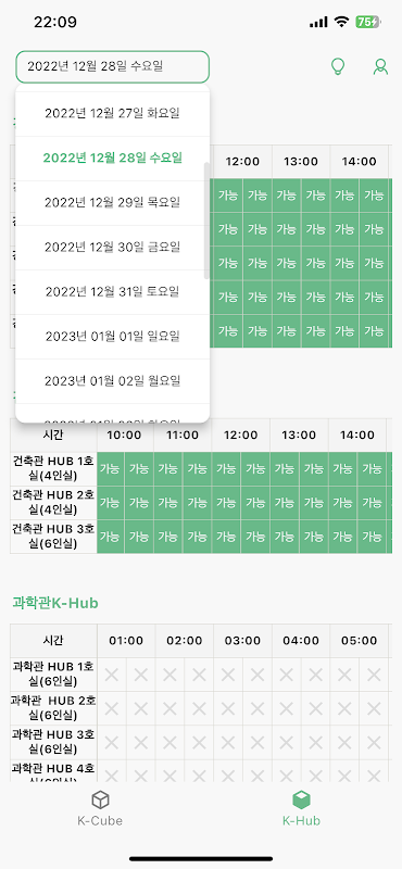 Now, you do not have to book K Cube (Hub) directly from Konkuk University's WE 人傳 homepage. You can easily check seat status and make reservations by logging in once in the app.