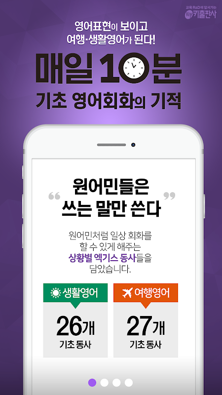 원어민들이 자주 쓰는 일상 회화 표현 기초 동사 27개로 정복! ※ "매일 10분 기초 영어회화의 기적" 교재의 일일 학습 어플리케이션입니다.