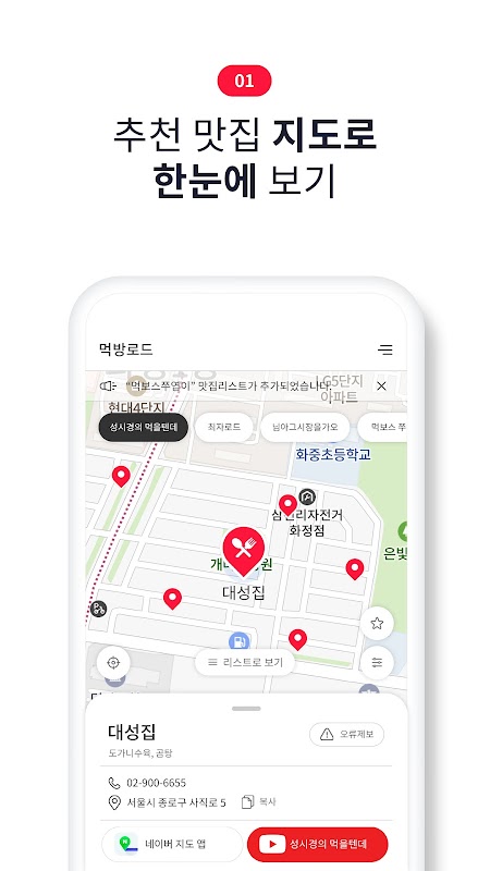 먹방 로드 - 유튜버 맛집 지도 1.15