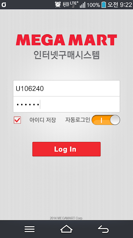 메가마트 인터넷 구매시스템 전용 모바일 APP을 설치하시고 사용하시는 ID로 동일하게 로그인 하시면 됩니다.