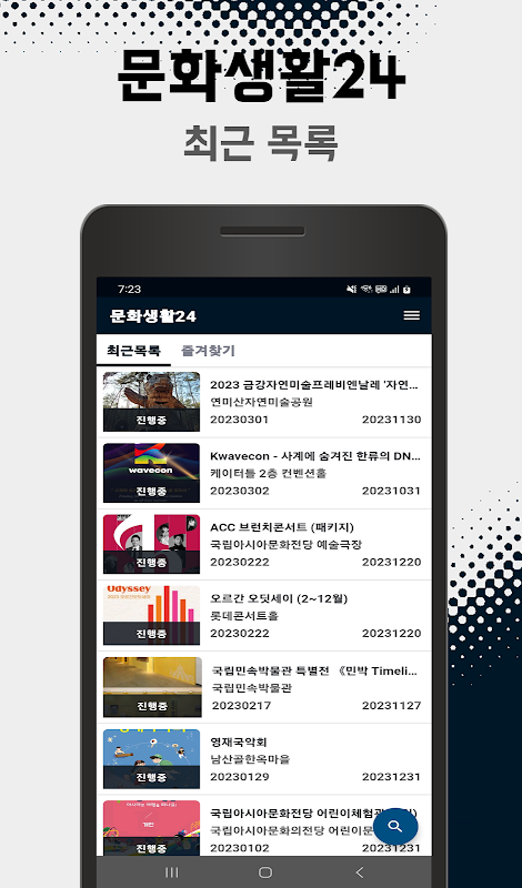 Consulte la información sobre actuaciones y exposiciones de todo el país en la aplicación Culture Life 24. ¡Puede consultar diversa información sobre la vida cultural, como música, danza, arte, obras de teatro y actuaciones tradicionales coreanas!