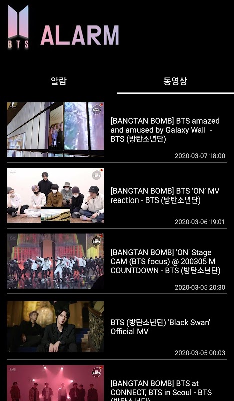 알람을 맞추고 방탄의 유튜브를 보면서 일어나세요~ 당신의 아침과 함께 합니다. 그리고 최신 방탄 영상들이 올라오면 푸쉬로 알려줍니다.