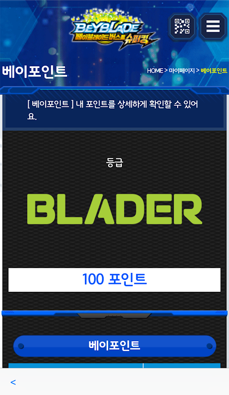 베이블레이드 버스트에대한 모든 정보를 제공하며, 앱을 이용해 제품에 부착된 QR코드를 촬영하면 구매한 아이템을 내아이템으로 등록할 수 있습니다.