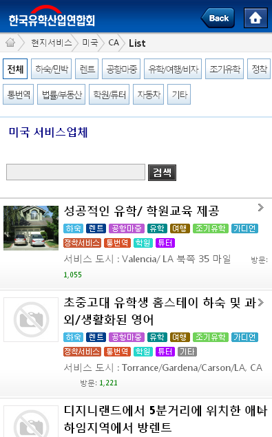 - 전 세계 현지 2,000여 서비스업체 (홈스테이, 공항마중, 택시, 진학서비스 등) 정보 제공