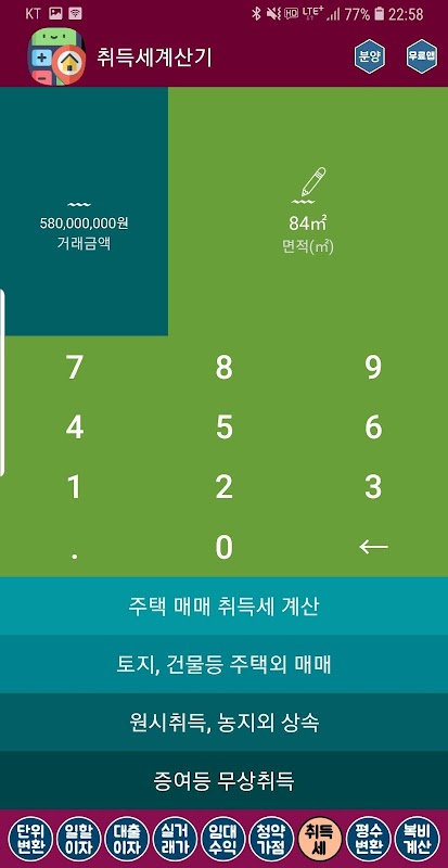 부동산계산기 (청약가점 복비 대출이자 임대수익률 연비) 2.22