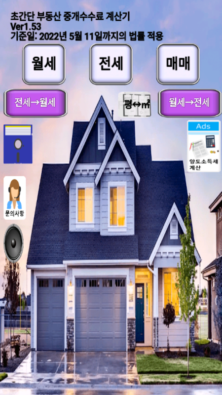 Es una aplicación que facilita el cálculo de las tarifas de corretaje de bienes raíces y la conversión de Jeonse en alquiler mensual y alquiler mensual en Jeonse. Simplemente toque 3 veces e ingrese la cantidad 1 vez.