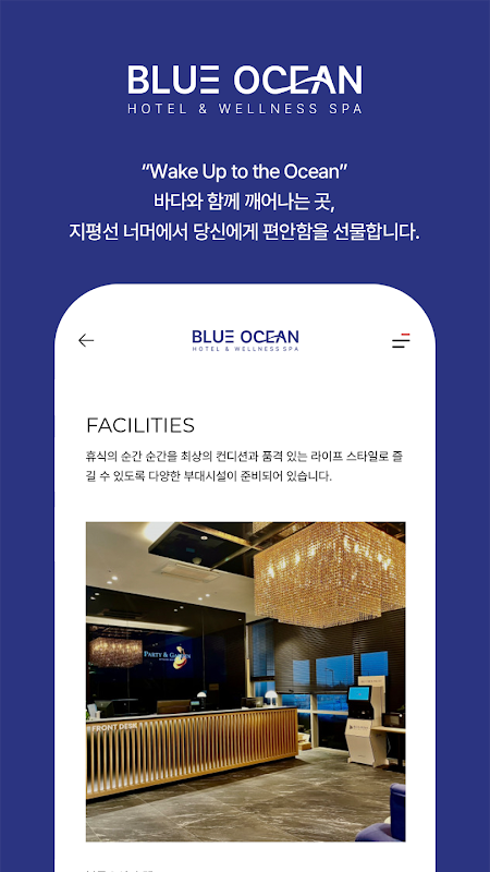 La aplicación oficial del Hotel Blue Ocean ofrece diversos servicios y beneficios a sus clientes, como reservas de habitaciones, información sobre instalaciones, información sobre eventos locales y ofertas especiales, además de beneficios y servicios de reserva disponibles solo para miembros.