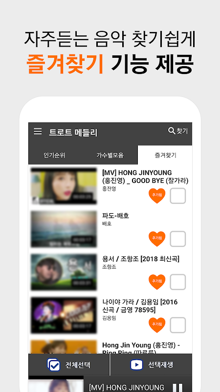 트로트 가수 히트곡부터 여러 장르의 '트로트모음'까지 손쉽게 감상 하실 수 있습니다.