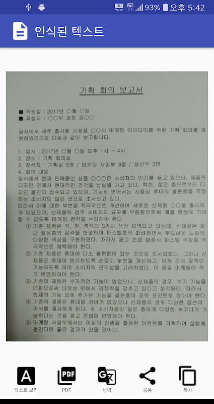 서류 인식 프로 - 문서 사진을 텍스트로 변환
