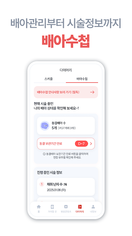 Puedes consultar fácilmente toda la información relacionada con el tratamiento que ofrece Promise IVF del Hospital Seoul Miz, incluyendo la gestión del programa de tratamiento, la guía sobre la orden de espera al visitar el hospital, el estado de almacenamiento de embriones congelados, el seguimiento del progreso en cada etapa del tratamiento, el recordatorio de medicación y la consulta de los resultados de las pruebas, todo en una sola app.