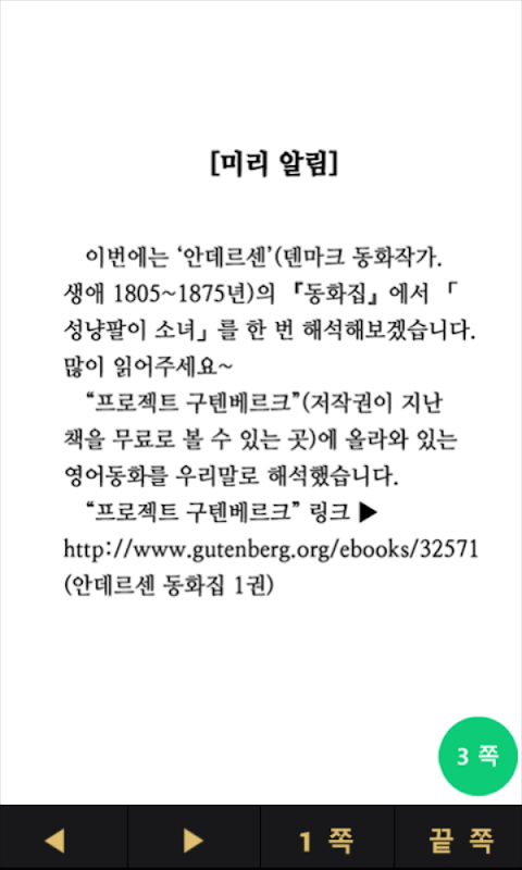 “프로젝트 구텐베르크”(저작권이 지난 책을 무료로 볼 수 있는 곳)에 올라와 있는 영어동화를 우리말로 해석했습니다.