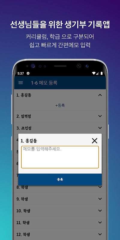 수업시간에 학생에대한 필요정보를 입력 해보세요