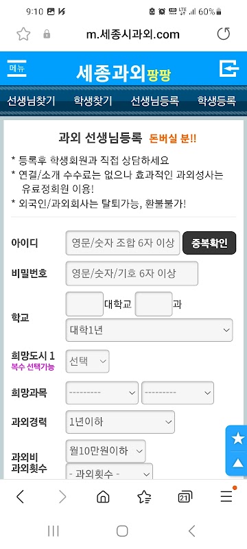 Acerca del 세종과외팡팡-영어, 수학, 국어, 세종시과외 선생님
