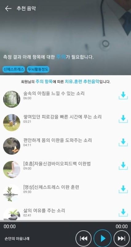 ⊙ 심신케어 결과에 따른 맞춤형 치유훈련 음원 제공