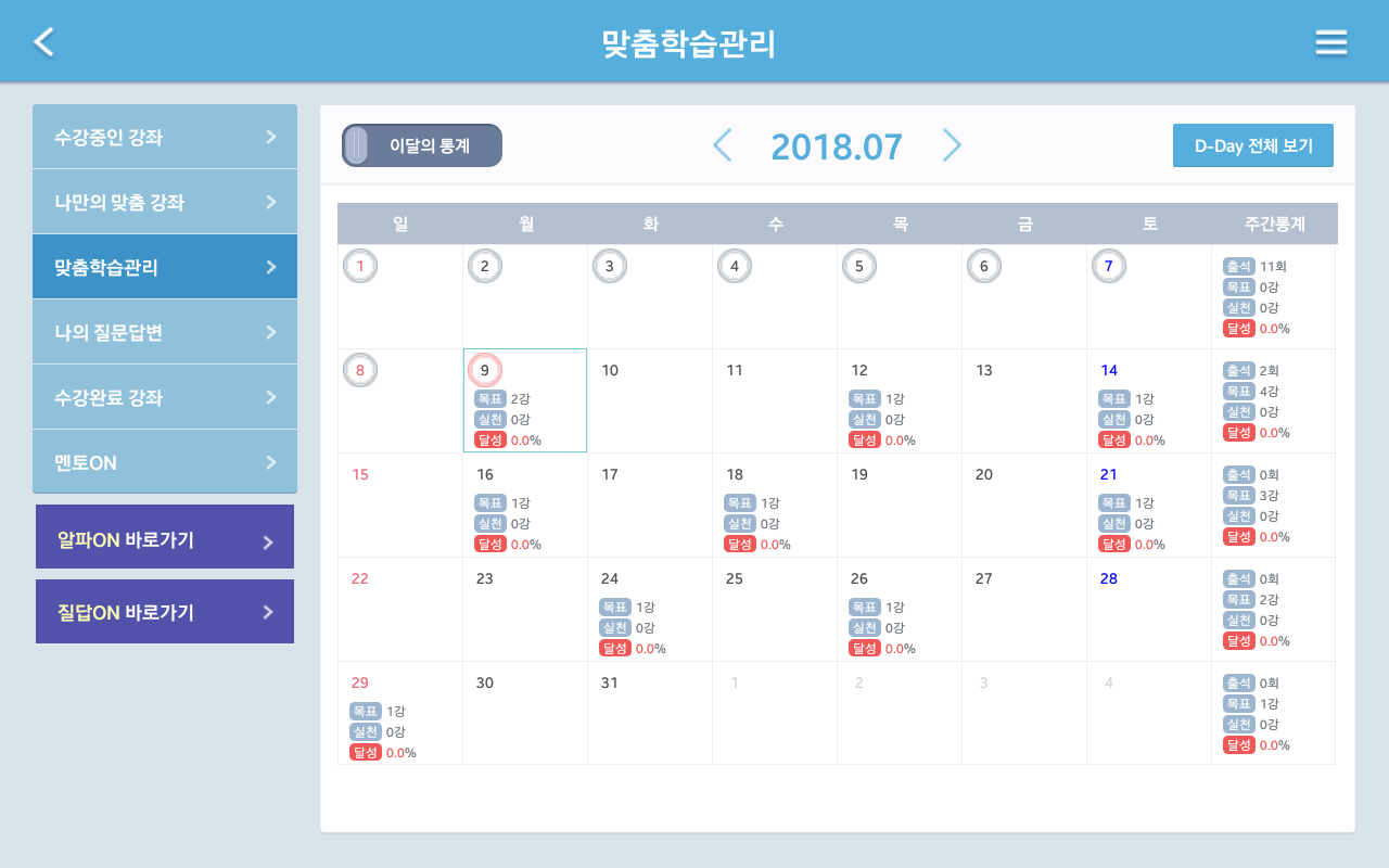 맞춤학습 계획, 나만의 맞춤 강좌, PUSH 알림을 통한 기본 학습 관리는 물론,
