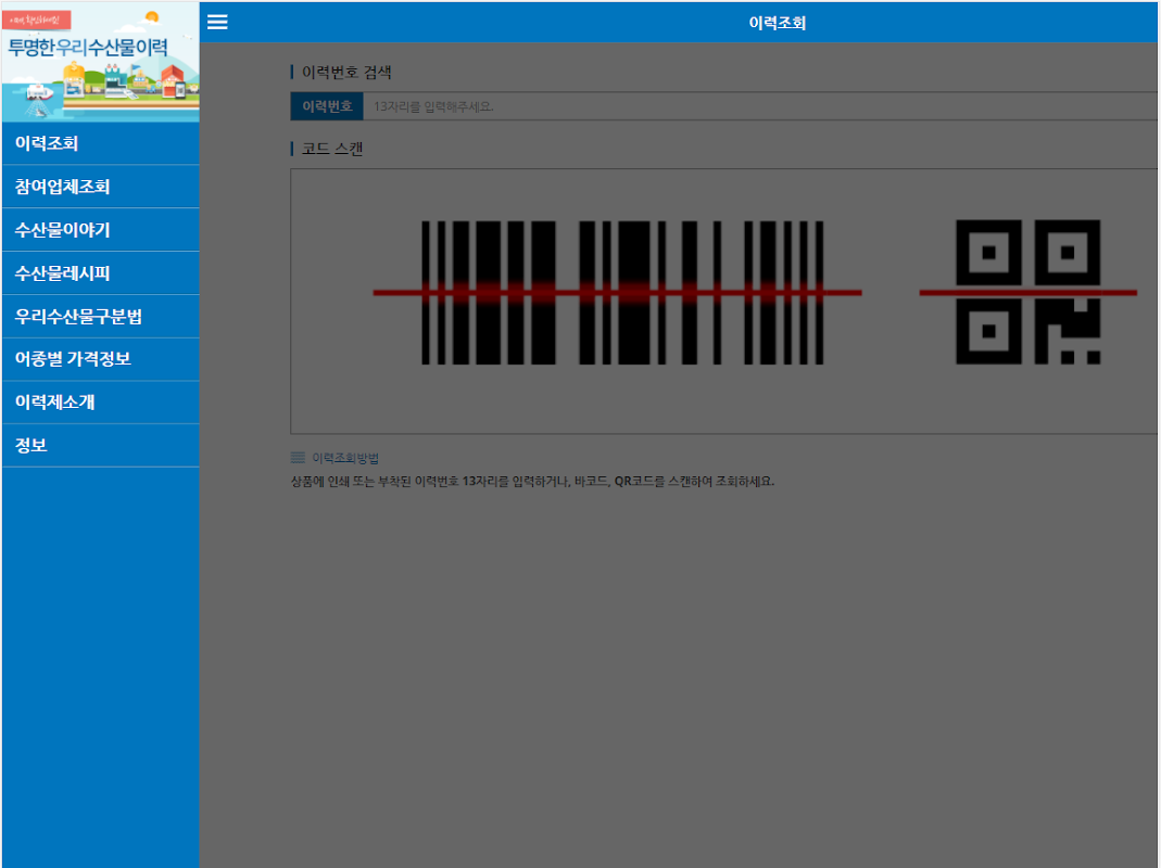 해양수산부에서 제작한 수산물이력조회 어플리케이션입니다.